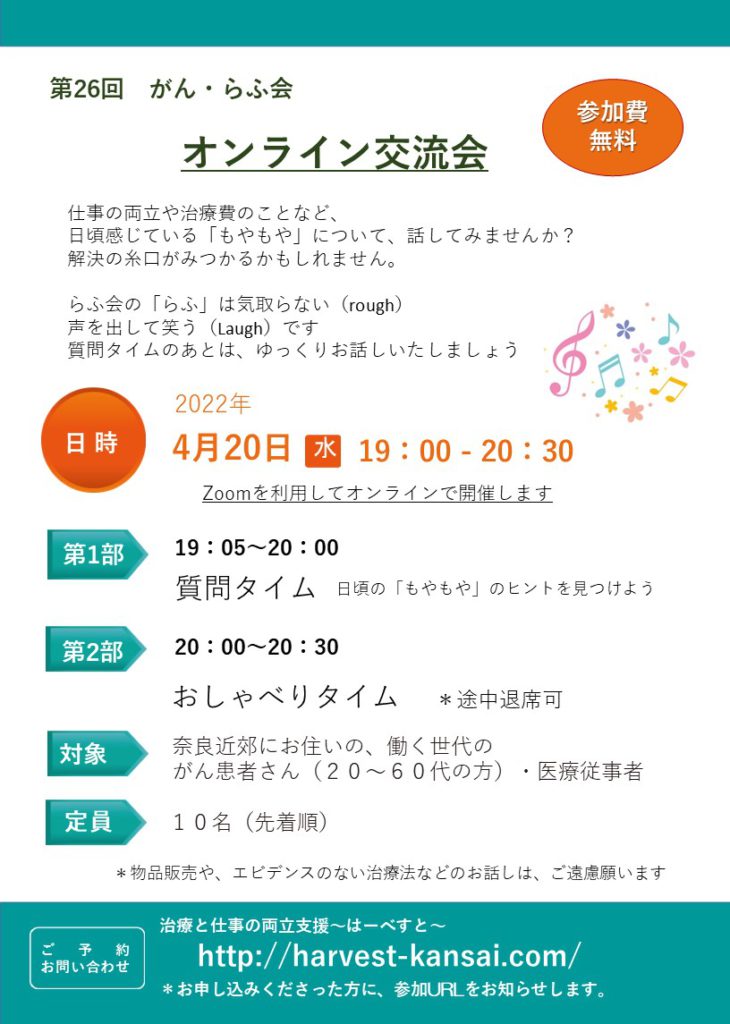 【開催報告】オンライン患者会( 第26回がん・らふ会)