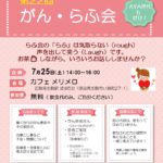 2020年7月25日 / 最終更新日 : 2021年4月1日 ae202irha4 がん・らふ会 リアル患者会( 第23回がん・らふ会)開催しました 本日、約半年ぶりにリアルで患者会(がん・らふ会)を開催しました。 奈良県内もコロナ感染症の拡大が懸念されるので、 用心に用心を重ねての開催です。 ……………………………………………………………………………… らふ会の”ら […]